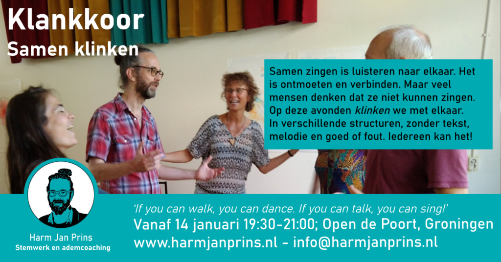 In deze serie avonden klinken we, dat lijkt op zingen, maar is wat anders. Je kunt het namelijk niet fout doen. Je hoeft geen tekst te kennen, geen melodie te volgen. Je hoeft niet zuiver te zingen. Iedereen kan het! En tegelijk geeft het hetzelfde verbindende effect als zingen. Sterker nog, vaak is het nog mooier omdat de klanken recht uit het hart komen.
